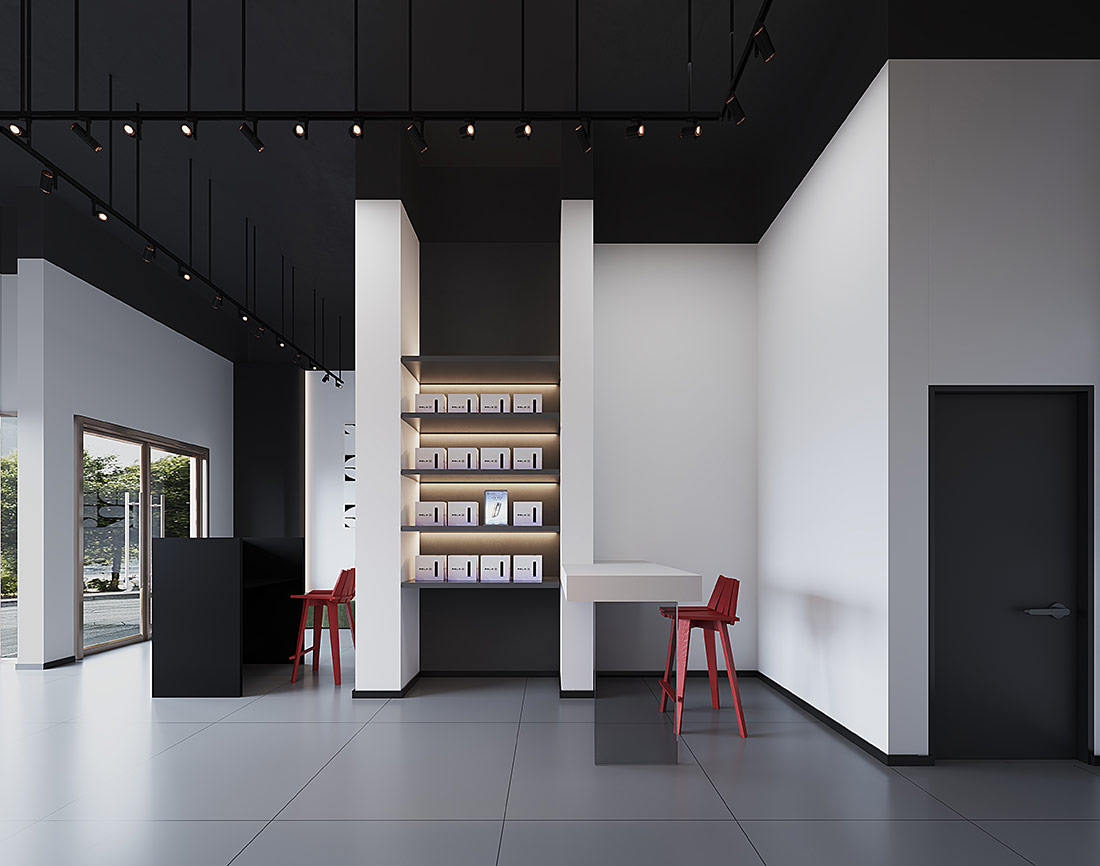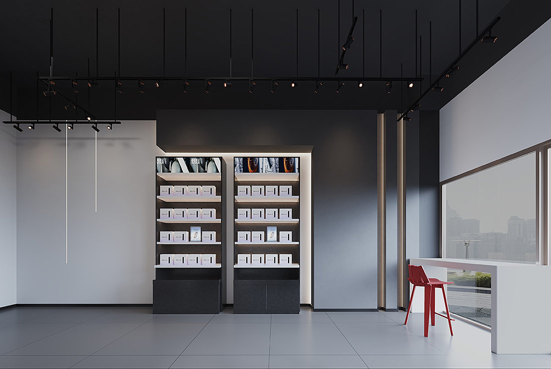 小型商鋪裝修效果追求精致與實(shí)用并存??臻g雖有限,但通過巧妙布局與色彩搭配,營(yíng)造出寬敞明亮的購(gòu)物環(huán)境。整體顏色使用白色和黑色相互混搭。墻面與地面選用耐磨易清潔材料,保持店鋪整潔。商品展示區(qū)設(shè)計(jì)醒目,利用燈光與陳列技巧吸引顧客目光。整體裝修風(fēng)格與商品定位相符,營(yíng)造出舒適愉悅的購(gòu)物氛圍,提升顧客體驗(yàn)與店鋪形象。