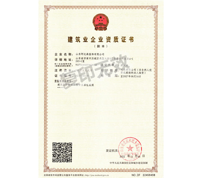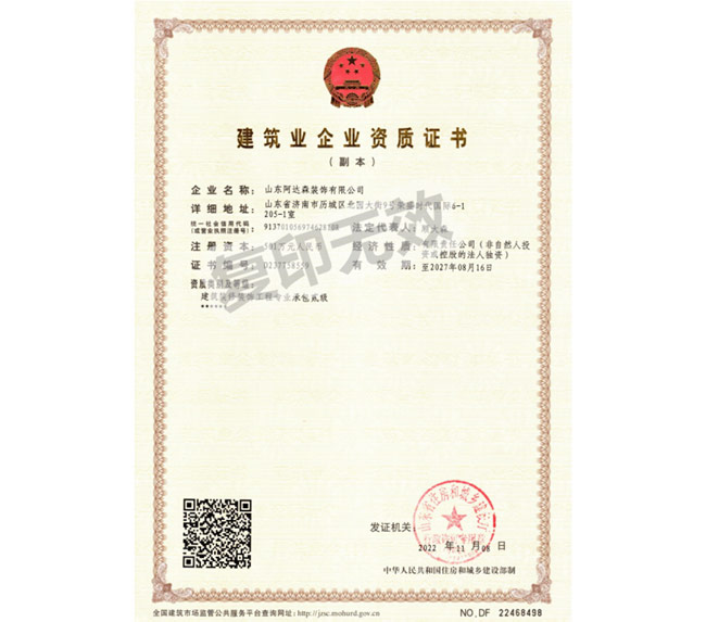 ? 山東阿達(dá)森裝飾有限公司是經(jīng)濟(jì)南市工商行政管理局正式批準(zhǔn)備案的正規(guī)裝飾企業(yè)。公司集辦公裝修設(shè)計、工程施工、建材配置、辦公家具配置于一體,涉及領(lǐng)域包括濟(jì)南店面裝修設(shè)計、寫字樓裝修、辦公室裝修、連鎖酒店賓館裝飾裝修、主題餐廳裝修、酒吧KTV裝修、家庭裝修裝潢等。